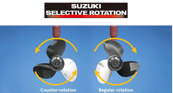 In addition to our drive-by-wire system (Suzuki Precision Control) and the Lean Burn Control System, the DF300AP and DF250AP feature Suzuki's Selective Rotation.